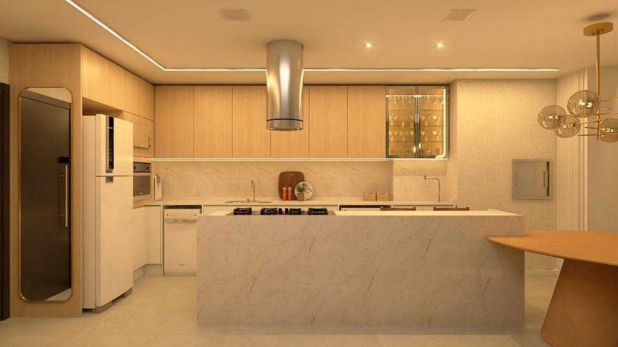 Foram feitas benfeitorias no apartamento: rebaixo em gesso, ponto para ilha na cozinha, porcelanato em toda área social.