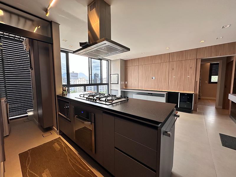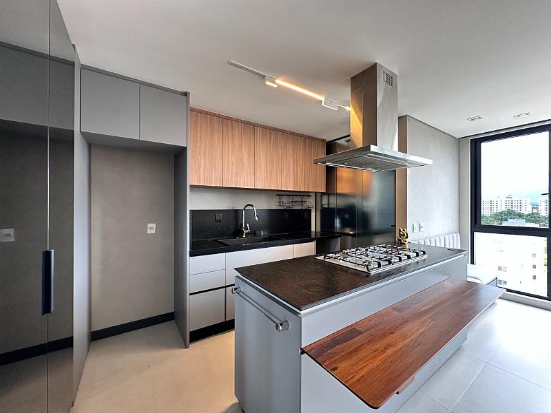 • Cozinha equipada com cooktop Eletromec, coifa inox, triturador de resíduos e pia com acionamento elétrico